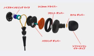 基本的な音質に関わるところでは、14.3mmの大口径ドライバーを搭載している。大口径ドライバーの振幅を、ハウジングの素材に合わせたダンパーなどを内部に効率よく配置したことで、音質のグレードを高め、不要な振動の徹底排除を実現している。このように入念なチューニングを行った結果なのだろうが、実にバランスのよいサウンドが再現される。