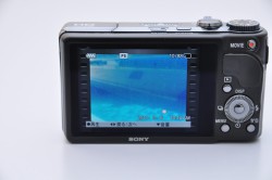 動画記録は新設の「PSモード」が、プログレッシブ方式による28Mbps・1080/60p動画を撮影できるモードだ。動画データは独自フォーマットにより記録されるため、BDレコーダーやディスクにファイルを移して動画ファイルとして再生することはできない。基本的には撮ったカメラをHDMIケーブルでテレビにつないで再生する楽しみ方になる。テレビでPSモードの動画を視聴してみたところ、大画面テレビで見応えのある高精細な映像の仕上がり具合が実感できた。なお動画撮影時には、同社のビデオカメラ“Handycam”シリーズに採用されている、上下左右2軸とジャイロセンサーによる回転軸方向のブレにも対応した3軸補正対応の手ブレ補正機能がはたらくので、コンパクトな筐体ながらブレを抑えた安定感の高い動画が撮影できる。さらに動画撮影中に静止画シャッターを切れば、3メガ(16対9)の静止画撮影が行える。動画撮影時の音声については、本体上部に大柄なステレオマイクが設けられ、記録品位の安定感が高まった。撮影時に誤って指がかからないよう、マイク位置のレイアウトにも気が配られている。ただ、本体のデザインをスマートにしつつ、3.0型の大型モニターを搭載したためか、背面のボタンはやや窮屈で操作しづらかった。特にMOVIEボタンは押し込み感が浅く、撮影を開始/終了の手応えがわかりにくいように思う。