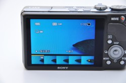 HX9Vとともに“Cyber-shot”の新たなトップモデルに君臨するモデル。デジタル一眼“α”シリーズをイメージさせる、なだらかな流線型を活かしたボディのデザインは、スタイリッシュであるだけでなく、両手で持った時の安定感も高い。背面ボタンのレイアウトはスムーズな静止画・動画撮影が可能なよう、十分に考慮されていると感じた。