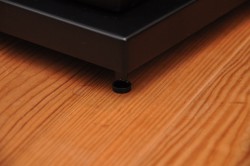 FS 57.2はパルプコーン型の145mmウーファー2基とシルクドーム型のトゥイーターで構成される2.5ウェイタイプの本格的なフロア型スピーカーで、ベースプレートとスパイクで重量を支えており、構造面からも安心できる形状だ。付属のスパイク受けを介して試聴室の床に設置し、早速音を聴いてみた。