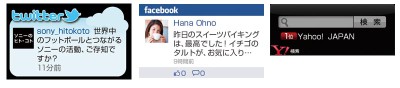 | アンドロイドOS搭載のスマートフォンなら、音声による文字入力が可能。Twitterでリアルなつぶやきをツイートできる!「ながら見」に役立つアプリは写真のTwitterやFacebook、Yahoo!検索のほかにも多数ある。ソニーのホームページでチェックしてみてほしい。 |