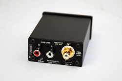入力はMini B型USBのみ、出力はアナログ・アンバランスRCAラインと96kHz/24bit対応S/PDIF同軸デジタルが用意され、電源LEDとシグナルロックLEDの表示があるだけのシンプルな構成となっている。