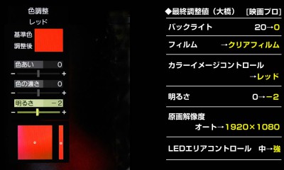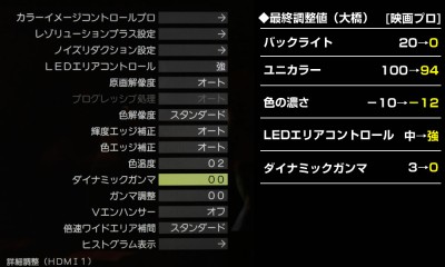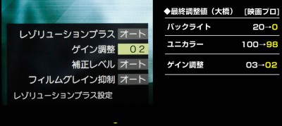 冒頭の夜闇の中のアクションと、ラストのシャーウッドの森に身を隠しロビンとその仲間が新たな伝説になろうというシーンを視聴。この作品に関しては調整すべき余地が全くなかった。ディスプレイとしての完成度の高さに脱帽である。画面に張り付いたような歪みのない安定した映像で、ビデオノイズの少なさ、精緻な解像感が映像にみなぎっている。端整でなめらかな階調、眼にやんわり染み入るような色彩の艶が魅力。(視聴:55ZG2)