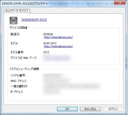 AVR-3312の操作性を高める機能として、さらにパソコンのWebブラウザソフトでネットワーク接続したアンプにアクセスして、再生ソースのコントロールや本体設定もパソコンから行えるようになる「Webコントロール機能」も用意されている。本機能はデノンのネットワーク対応のAVアンプに長らく搭載されてきた機能だが、本機においてもWindows 7のコントロールパネルから簡単にアクセスできるようになっている。