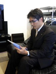 こうした悩みを解決するべく佐藤さん宅を訪れた取材班。音のスペシャリストである大建工業(株)建築音響部サウンドセンターの井上氏がさっそく部屋の残響測定を開始する。