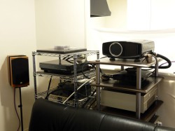 およそ8畳のリビングでホームシアター/オーディオライフを楽しんでいる佐藤さん。スピーカーにモニター・オーディオ「Gold Signature」シリーズ、プロジェクターにビクター「DLA-HD750」、AVアンプにデノン「AVP-A1HD」などのハイエンドな機器を用いてシステムを組む、かなり本格派のホームシアター/オーディオファンだ。