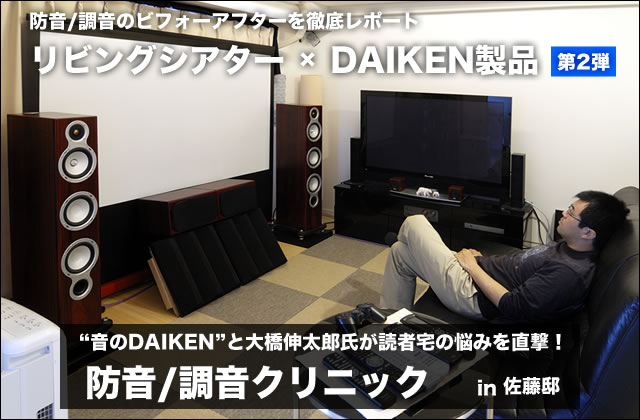 音に対する研究を長年積み重ねてきた“音のDAIKEN”と、評論家の大橋伸太郎氏がタッグを組んで読者諸氏の防音/調音に対する悩みを解決する「防音/調音クリニック」。第2回目に登場するのは、自分でも防音/調音対策を行っているものの「何が正解かわからない」という悩みを抱える佐藤文則さん。前回とは異なるシチュエーションでの防音/調音に対してDAIKEN製品はどう応えるのか?