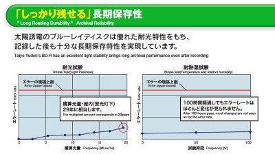 ザッツの「録画用BD-R LTH TYPE 1‐6倍速記録対応」は、ドライブの記録パワーの変動やバラツキに強い、余裕のあるワイドパワーマージンにより、記録書き込み時の高い基本性能を誇るのが特長のひとつ。また、優れた耐光特性を備えており、記録後の長期間にわたる保存性にも優れており、まさに、大切な映像記録のアーカイブには最適だ。
