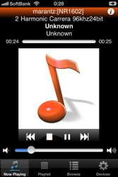 AirPlayを使うのは、本当にカンタンでした。iPhoneの「ミュージック」アプリに表示されたAirPlayのアイコンを押して、NR1602を選択するだけです。そうするとAVアンプのセレクターが別のところでも、音楽の再生がはじまります。iPod touchはふだん妻も使うのですが、妻もAirPlayはすぐに覚えて便利に活用しています。
