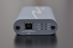 まず大きな特徴は、ペンケースほどのコンパクトさと、USB入力とアナログ出力のみを用意したというシンプルな仕様。必然的に電源はUSBバスパワーだ。PCからのノイズの影響は、独自回路で電源を再生成することで回避している。一方で、限られたスペースの中にサンプリング周波数を示すLEDを用意してあるのは嬉しい。ユーザーは一目でそれを確認できる。USB伝送はアシンクロナス(非同期)方式。PC側ではなく本機側のクロックを基準に伝送を制御し、音質を損なうジッターを抑制する。