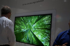 一つは筆者自身によるブースレポートでも既に取り上げたサムスンの4Kディスプレイだ。4Kパネルであるという以上の情報はほとんどないデモ展示であったが、静止画を元としたと思われるソースによる映像は、さすがに解像感が出ており、色再現性も優秀だった。