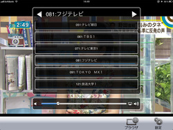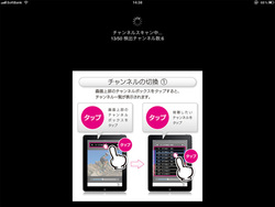 アプリをインストール後、起動してみる。初回起動時にはチャンネル設定が自動で行われる。テレビ画面が立ち上がった後は、画面をタップすればチャンネルセレクターが表示され、タップ操作でチャンネルが切換えられる。操作自体は確かに手軽なのだが、チャンネルの切換えに約10秒近くのタイムラグがあるため、もう少しレスポンスを向上させてほしいところだ。