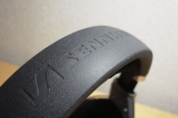 その他の細かなところも、モノとしての仕上げはHD800に大きくは劣らない印象である。ハウジング等の大部分はHD800のそれに近い特性の樹脂素材を採用しており、艶を控えた質感で「安っぽさ」もない。ヘッドバンドは革かそれに近い人工素材にシボ加工を施し、吸い付くような手触りだ。そこにゼンハイザーのロゴが立体的に描き込まれている。…いい感じだ。