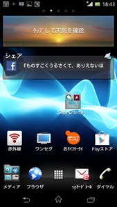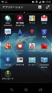 OSは最新のAndroid 4.0をベースとして、デフォルトのテーマにはオリジナルの「Xperia」を採用。実際に起動した画面を操作してみても、ドコモ標準のパレットUI以上に自己主張のない、落ち着いたデザインだ。