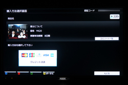 今回はTBSオンデマンドで提供している沢尻エリカ主演のスペシャルドラマ『悪女について』をオンデマンドで購入してみた。「TBSオンデマンド」メニューを開いて購入を選ぶと、設定画面(初回のみ表示される)が表示され、認証コードの入力、パスワード、等の入力がそれぞれ求められる。その購入画面での「見る」を押せば実際に視聴可能だ。配信方式はストリーミングだが、クオリティは安定している。もちろんHD画質で、地上デジタル放送と比べても遜色ないレベルでの画質がキープできていることが確認できた。