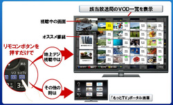 「もっとTV」最大の特徴は、サービスへのスムーズなアクセスにある。ビエラ付属リモコンのチャンネルボタンのすぐ横に、「VOD」と表示されたボタンを押してみよう。「ビエラ・コネクト」メニューを経由することなく直接「もっとTV」コーナーへとジャンプできる。VODサービスへすんなり入れる仕組みが構築されている。