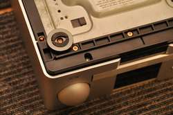 天板の固定には銅ワッシャー、リアパネルにはアルミワッシャーと銅ワッシャー、内部には真鍮ニッケルメッキワッシャーと銅ワッシャーを採用。また、メカ部の取りつけネジにも銅メッキをかけ、解像度と音場感の改善に結び付けている。
