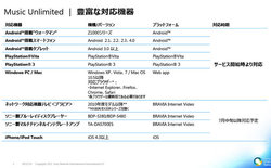 Android 2.1以降のスマートフォンやAndroid搭載ウォークマン、タブレット(Android 3.0以降)といったモバイル端末に加え、PS3とPS Vitaでも利用できる。