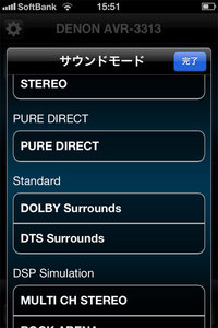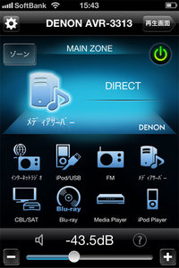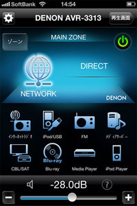 デノンオリジナルのコントロールアプリ「Denon Remote App」は、今年4月に“Ver.3”へアップデートされ、大幅にその使い勝手が刷新されて、便利になっている。本アプリに対応するのは「AVR-3313」だけでなく、兄弟機の「AVR-2113」「AVR-1713」(製品レビュー)やネットワークオーディオプレーヤー「DNP-720SE」(製品レビュー)も同じだ。なおデノンでは近くAndroid版のアプリも提供を開始する予定だ(関連ニュース)。
