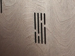 この平坦なパネルを部屋に入れるだけで、なぜ響きを調整することができるのか。その秘密は内部の独特な構造にある。パネル内には縦方向に細長い共鳴管が並んでおり、前面に見える短いスリットが各共鳴管の開口部になっている。開口部の位置を境に長さの異なる上下2本の共鳴管としてはたらき、それぞれが異なる周波数で吸音の効果を発揮する。
