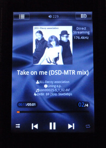 再生方法だが、何も特別なことはない。他の形式のファイルと同じように本機の内蔵メモリーまたはSDカードに転送して、選曲ナビゲーションで選択すればOK。今回はe-onkyo musicで購入したDSDファイルでテストしたが、それに埋め込まれているタグ情報も問題なく認識。選曲ナビゲーションでもメイン画面でも、アーティスト名や曲名などがきちんと表示される。