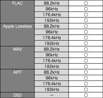 なお、DSDも含めて現在考えられる主なハイレゾ音源の形式と仕様への対応を念のため実際に確認してみたが、下の表のように、どれも問題なく再生できた。