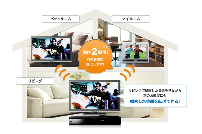 レート変換ダビングのスピードが最大3倍にまで高速化されたことは、新ユニフィエの高い処理能力によるメリットです。DIGAのAVコンテンツを家中どこからでも楽しめる「お部屋ジャンプリンク」が進化し、2ヵ所同時配信可能になったことも、処理性能に余裕が生じたためです。