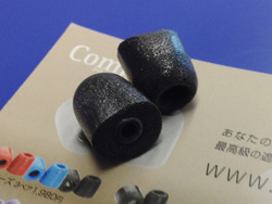 これは、コンプライのチップのしなやかさと適度な反発がもたらすものであると思う。試しにチップを指で握りつぶすと、つぶれたままになってしまう。最初それを見た時は、壊してしまったのではないか? と心配してしまった。一方、イヤホン付属の純正チップは、コンプライのチップよりも早く元の形に戻る。これは逆にいえば、最初に耳に入れた位置から使用しているうちにどんどんずれていってしまうことを意味する。