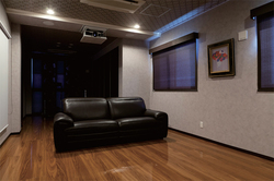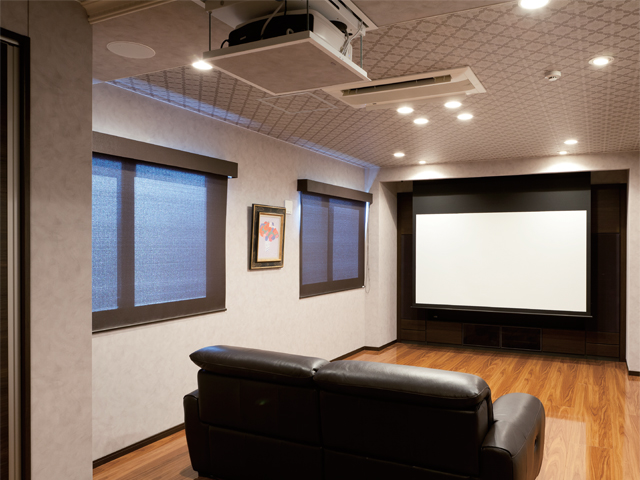 「この部屋は当社にあるレクリエーションルームです。従業員みんながリラックスでき、様々な用途で遊べる空間にしようと、ホームシアターをつくろうと思いました」と、オーナーの岡田さん。