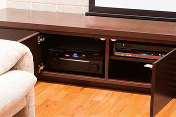水原氏はご夫婦がもつ落ち着いた空間のイメージを大切にし、ホームシアター機器はラックやボックスを設けて、露出しないようにインストールした。特に秀逸なのがプロジェクターのインストール。エプソンの「EH-TW8000」を1階の天井上にボックスを設けて納めている。ボックスの前面は連子状に横に木を組み、真ん中のレンズの部分を丸くくり抜いた。こうしたつくりのため、水原氏によると、プロジェクターはエプソンの「EH-TW8000」以外には考えられなかったという。