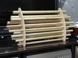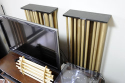 「アンクIII」はTVの前や天井、床などに手軽に設置できる小型のルームチューニングアイテム。シルヴァン、アンク同様にタモ材を使用しているが、柱状の配列や太さなどは専用に新たに設計されたもので、価格は1台10万円(税別)。富澤さんのようにリビングでTVとオーディオシステムを同居させているユーザーにとっては、特に効果的なアイテムとなるはずである。