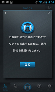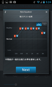 インストールして起動するといきなり「聴力特性を把握します」というメッセージが表示され、イコライジングのための測定が開始される。