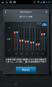 あとはその測定結果&イコライジング設定に名前をつけて保存。以降、このアプリで音楽ファイルを再生する際にはそのイコライジングが適用される(他のプリセットとの切替も可能)。