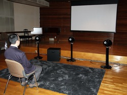 今回は富士通テン(株)本社の視聴室にて行った。低域のレンジが広くボリュームも印象的な、CD『鬼太鼓座』をまずは視聴した。システムはTD510ZMK2との組み合わせによる2.1ch環境である。