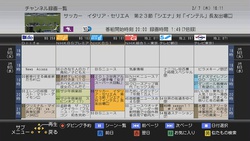 「チャンネル録画」で録画した番組は、番組表によく似た「チャンネル録画一覧」の画面から再生できる。表示チャンネルは3/6chの切り替え対応で、表示チャンネルの5時間分が一画面に収まる。録画番組を再生する際には全チャンネルに自動チャプターが働き、CMのスキップなどが行えるのは大きなメリットだ。