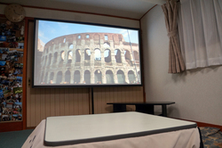 普段見ているテレビに置き換えるように、セットの80インチスクリーンを設置しました。場所は押入れの前。スクリーン自体は非常に軽いので必要な場合は簡単に動かせます。ホームシアターのような空間を第一に考えるのではなく、カジュアルに、今まで見ていたテレビの代わりとしてプロジェクターを使ってみました。