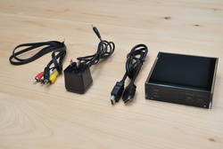 パッケージの付属品にはHDMI/アナログAV/AC電源の3種ケーブルが付属している。