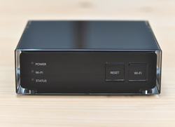 本体は外形寸法が100W×33H×100Dmmと、スマートフォンよりもやや大きいぐらいのサイズ。重さも約250gと非常に軽い。シンプルな外観だが、ブラックの本体周囲をアクリルのクリアパーツで覆ったデザインは思いのほかスタイリッシュだ。