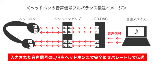 また、ヘッドホン/イヤホンリスニングにおける「フルバランス伝送」とは、DAコンバーター(USB-DAC、ポータブルDAC)-ヘッドホンアンプ間、ヘッドホンアンプ-ヘッドホン間など、使用する機器同士の接続を全てをバランス接続で行う形式。