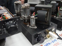 僕は真空管というものに弱いわけだが、今回出展されていた真空管モノでいちばん魅力的に感じたのはコレ。192kHz対応USB入力搭載の真空管ヘッドホンアンプ「HPA-6V6」と「HPA-6V6T」だ。基本仕様価格は共に6万6,150円(DACチップやトランスを数パターンから選択可能で、それによって価格が異なる)。