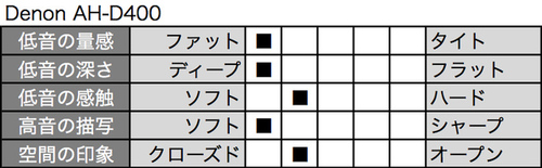 ■デノン「AH-D400」:クラブ系っぽい密度感を強めに出して、濃厚な低音