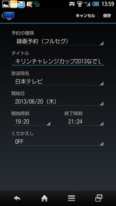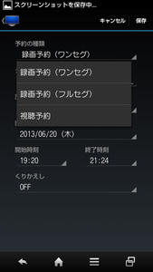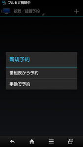 予約録画はテレビ視聴のメニューから「番組表」を選択表示して、視聴中のチャンネルリストを辿って予約が入れられるほか、プリインストールされている「Gガイド番組表」アプリの番組表からの登録も行える。