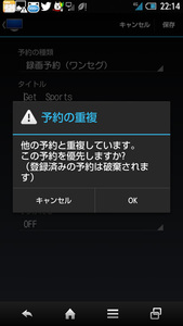 録画ファイルの保存先は内蔵メモリー、microSDカードの両方が選択可能。予約を入れる際には本体メモリーとmicroSDカードの残量、録画可能時間・件数のチェックも行える。また同一時間帯に予約が重複した際にはアラートも表示される。