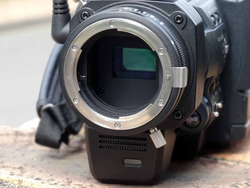 本機は一見するとHMQ10をレンズ交換式にしただけと思われがちだが、実はそうではない。カメラとしては光学系が異なるまったくの別モノで、有効画素数829万画素、1.25型の大型CMOSセンサーを搭載している。加えて「重量級のレンズを取り付けても耐えられる構造も作り出すため、マウント付近の大幅な剛性アップも図っている(JVCケンウッド・大浦氏)」という。また、最近は絞り機構を搭載しないレンズが増えているため、機械式の絞りリングも合わせて搭載されるなど、この部分に限ればまるでHMQ10とは構造が異なっていると言ってイイだろう。