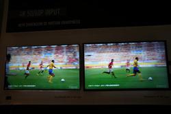 スカパー!提供による60p映像のデモは、サッカーJリーグの試合映像を上映。サッカーの本場である欧州の来場者の注目度も高い中、従来に見たことないレベルのなめらかな映像を見せつけていた。例えるなら、60pで製作されたゲームの映像を初めて見た時に感じる驚きに近いものがある。4Kの画質評価は解像度だけでなく4K/60p映像視聴の環境が整ってからが本番、ということを強く感じさせられる。