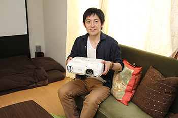賃貸の6畳ワンルームに、「EH-TW400」を使ってホームシアターを作り上げていた田代さん(田代さんのお部屋紹介はこちら)。田代さんのお部屋で、「EH-TW5200」を使ってみていただきました。