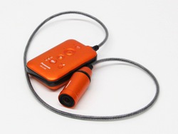 HX-A100の魅力は「ウェアラブルカメラ」というネーミングにもあるように、そのスタイルにある。カメラ部と本体部がセパレートになっているだけあって、身体に装着するカメラ部の大きさは4機種中で随一の小ささだ。