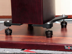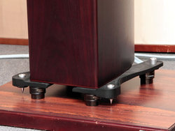 なぜこうなったのか。スパイクというインシュレーターはご存じの通り上物の不要振動を床面へ効率的に逃がす効果を持つ。スピーカーの多くがスパイクを標準装備しているのはスピーカーそのものが振動の巣というべきものだからだ。ところが、スパイクはそういう効果を持つだけに下面、すなわち受けの材質や形状に大きな影響を受ける。ウィンドベルは高度なスプリングとショックアブソーバーで振動を遮断してしまうから、上の"風鈴"までで振動が治められてしまうのだ。