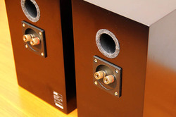スピーカーは驚くほど様々なところまでこだわりが詰めこまれた造りだ。トゥイーターとウーファーの振動板にはもちろんウッドコーンを採用。ウーファーの背面にはチェリー材のシートを十字に装着することで、音の伝搬速度を上下左右方向に高めている。