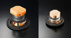 加えて、ウーファーユニットの磁気回路の背面に8角形のチェリー材ウッドブロック材を装着。さらに、ウーファーの磁気回路の内部、銅キャップの部分にはメイプルの木片を、トゥイーターのドーム振動板の内側、ポールピースの上部にはスプルース材を貼るなど、厳選した木材を惜しみなく使用して音質向上を追究している。